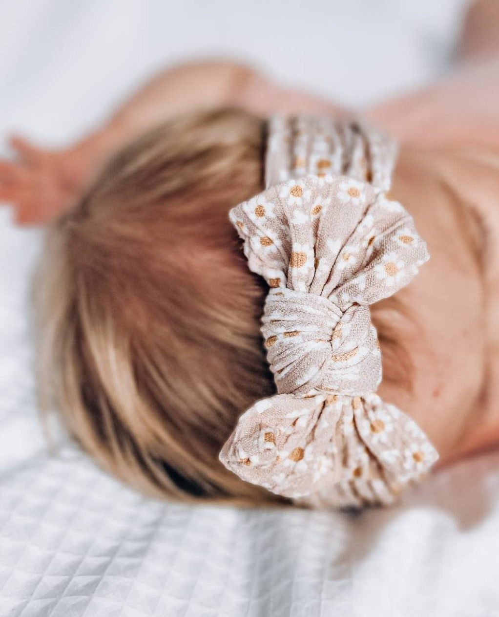 Cintillo almendra Daisys, un accesorio premium que combina delicadeza y estilo. Su diseño de almendra en un hermoso estampado de delicadas margaritas es perfecto para complementar cualquier outfit de tu pequeña.