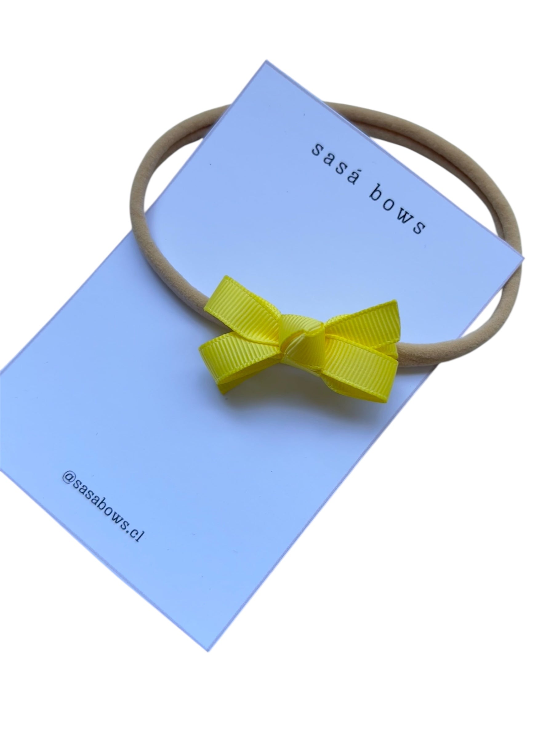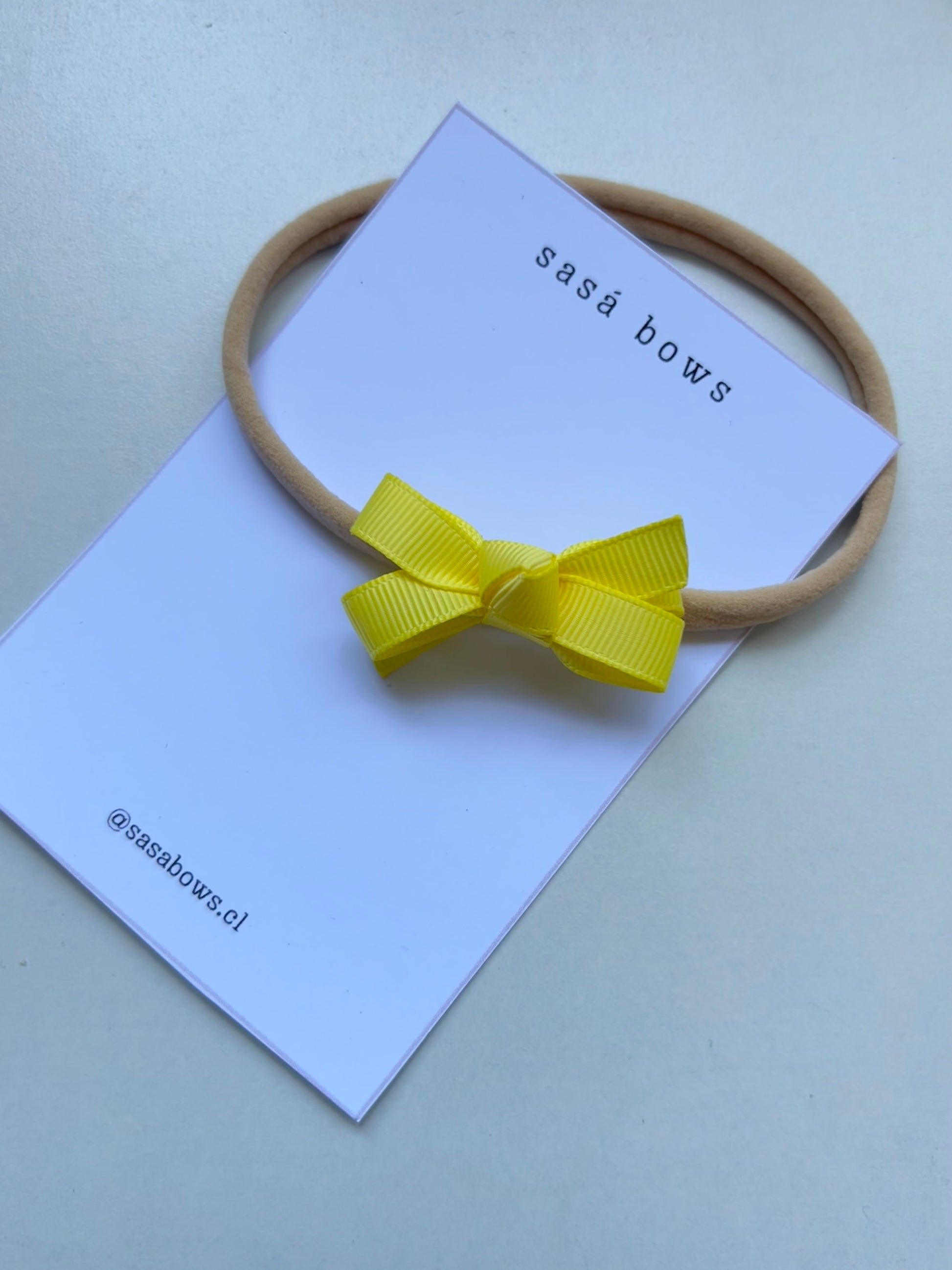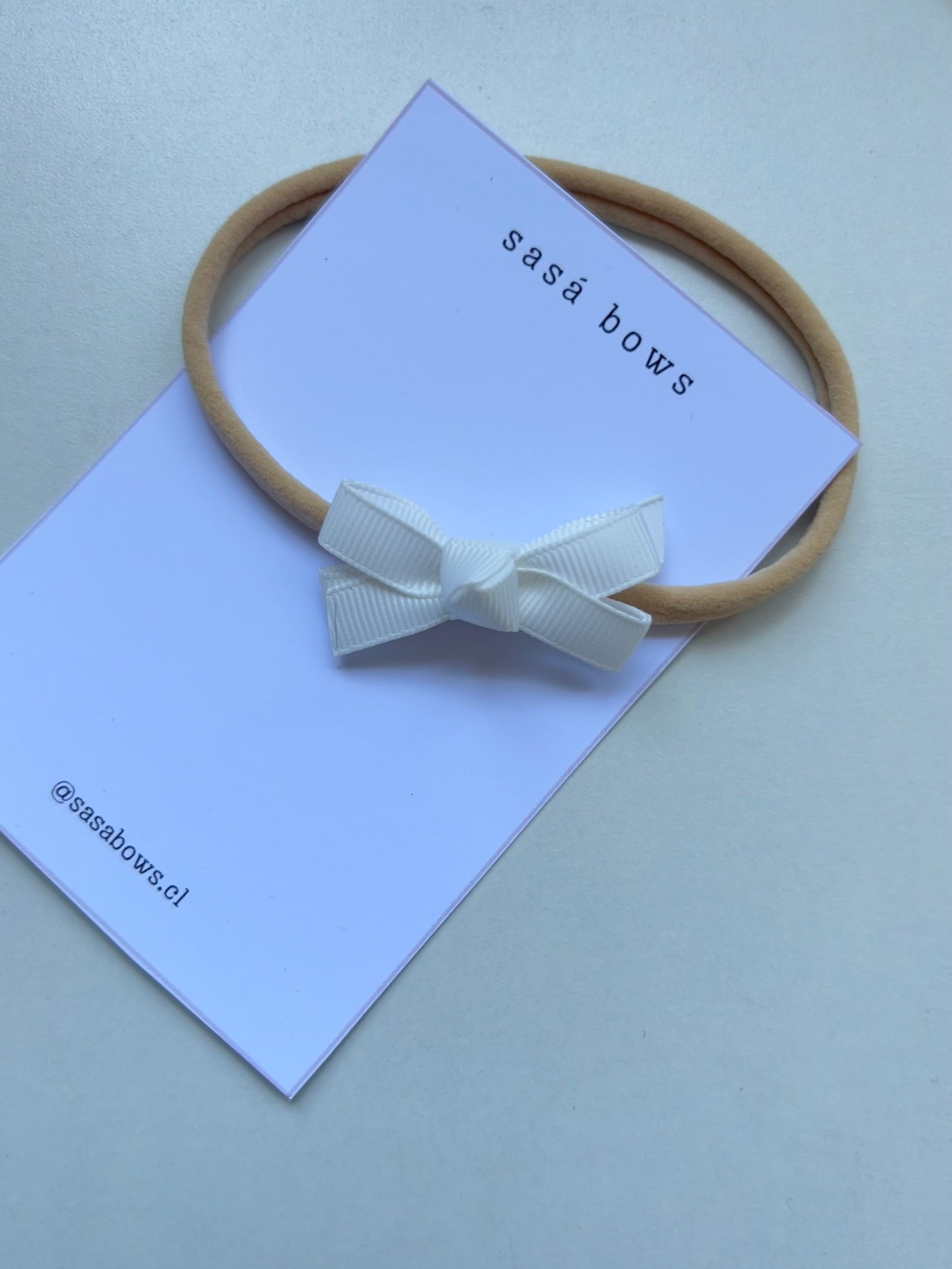 Hecho a mano sobre un cintillo de nylon elasticado apto para su uso desde recién nacidas.